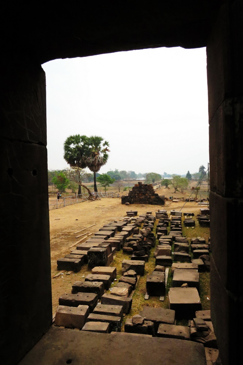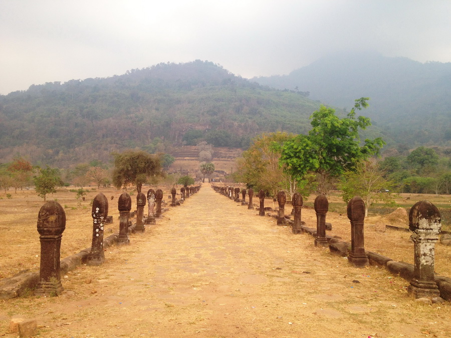 8 โมงกว่า ๆ พี่แหล่มารับเราที่โรงแรมลานคำ..เรามุ่งหน้าไปทางเมืองจำปาศักดิ์ หลบลี้หนีความวุ่นวายเข้าสู่ความสงบของถนนหนทาง ปีนี้ไม่ว่าที่ไหนก็แห้งแล้วเหลือเกิน 2 ข้างทางที่เราขับรถผ่านทำให้เรารู้สึกถึงความร้ายกาจของมนุษย์ที่ช่วยกันทำลายป่าไม้ การเผาป่าเกิดขึ้นทุกที่เหมือนเป็นเรื่องปกติไปเสียแล้ว...พี่แหล่บอกว่าถ้ามาช่วงหน้าฝนแถวนี้จะสดชื่นร่มรืนจะเห็นแต่สีเขียวขจีของต้นไม้ใบหญ้า...สภาพอากาศวันนี้รู้สึกจะครึ้มฟ้าครึ้มฝน ไม่เห็นแสงแดดเลย เรากลัวว่าฝนจะตกเหลือเกิน ถ้าฝนตกเราก็จะเที่ยวกันไม่สนุก เพราะก่อนที่เราจะมาพยากรณ์อากาศเค้าเตือนมาว่าจะมีพายุฝน...ขณะนั้นเราก็ต้องลุ้นไปตลอดทาง เราใช้เวลาไม่นานก็ถึงวัดพู
