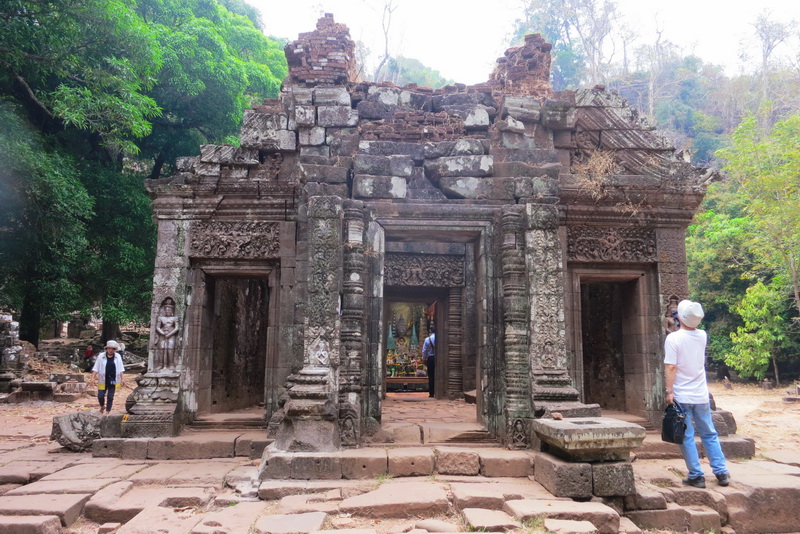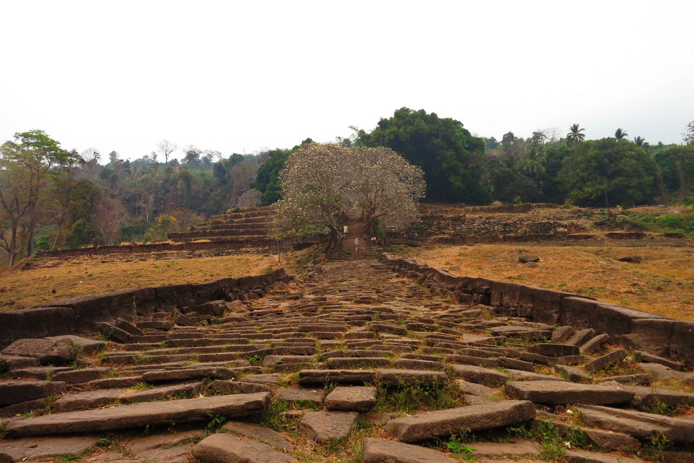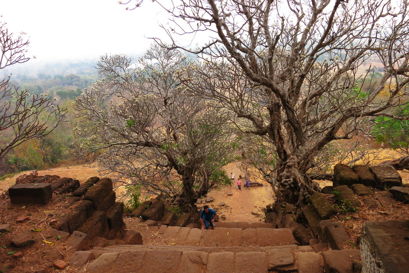 ...ค่าเข้าชมวัดพูคนละ 50,000 k. และมีรถกอล์ฟบริการรับ-ส่ง เมื่อรถจอดที่ทางเข้าของปราสาทวัดพู..เรามองเห็นปราสาทเก่า ๆ ที่ได้รับการรักษาไว้ให้คงสภาพไปตามธรรมชาติ ทางเดินที่มีหญ้าขึ้นแซมออกมาตามหิน .... บางจุดของวัดพูก็ได้รับการบูรณะซ่อมแซมบ้างเพื่อป้องกันการล้มพังเสียหาย...บันไดทางขึ้นที่มีความลาดชันมากเป็นพิเศษ ต้องค่อย ๆ ใช้ความระมัดระวังในการเดินขึ้น บันไดทางขึ้นจะปลูกดอกจำปาไว้ตามทางเพื่อให้ความร่มรื่นและเมื่อด่านผ่านเข้าไปเหมือนเราจะย้อนยุคเข้าไปในอดีตซะงั้น