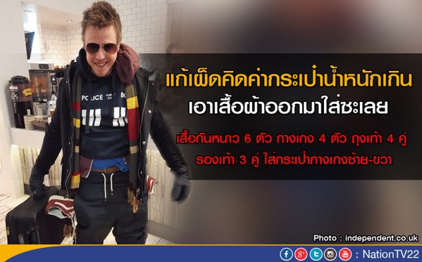"เชื่อว่าทุกคนคงเคยปวดหัวกับการถูกสายการบินคิดค่าโหลดกระเป๋าน้ำหนักเกิน พ่อหนุ่ม แมทท์ บอตเทน (Matt Botten) ก็เช่นกัน เพราะเมื่อเขาเตรียมตัวไปพักร้อนที่ไอซ์แลนด์กับแฟนสาว 1 สัปดาห์ เมื่อถึงขั้นตอนเช็คสัมภาระ เขาจะต้องเสียค่าโหลดกระเป๋าเพราะน้ำหนักเกินเป็นเงิน 46 ปอนด์ หรือประมาณ 2,300 บาท เขาก้ไม่ชอบใจที่จะต้องจ่ายเงินว่าแล้ว มีหรือที่เจ้าหนุ่มจากคาร์ดิฟฟ์จะจ่ายเงินนั้น เขาจึงตัดสินไป"แปลงโฉม" เป็น Michelin man"ผมตัดสินใจอย่างสมเหตุสมผลแม้อาจจะอับอายที่ต้องแต่งตัวแบบนี้นานเป็นชั่วโมง แต่ผมว่ามันคุ้มกับค่าใช้จ่าย"โดยมีรายงานว่า ชุดที่เจ้าหนุ่มขึ้นเครื่องบินนั้น เขาสวมเสื้อกันหนาว 6 ตัว กางเกง 4 ตัว ถุงเท้า 4 คู่ และรองเท้า 3 คู่ใส่ไปในกระเป๋ากางเกงซ้ายและขวา นี่ยังไม่นับรวมผ้าพันคอ, ถุงมือสกี แว่นตากันแดดอีกต่างหากเป็นความสามารถเฉพาะตัวที่หลายคนคงอยากเลียนแบบ"