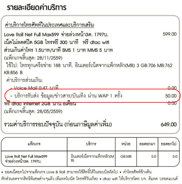 โดน DTAC เรียกเก็บค่าบริการ ข้อมูล/ข่าวสาร
