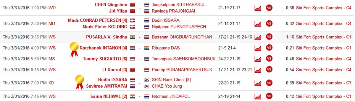 + รอบก่อนรองชนะเลิศ (1 เม.ย. 59) คู่แรก เริ่มแข่งเวลา 15.30 น. +