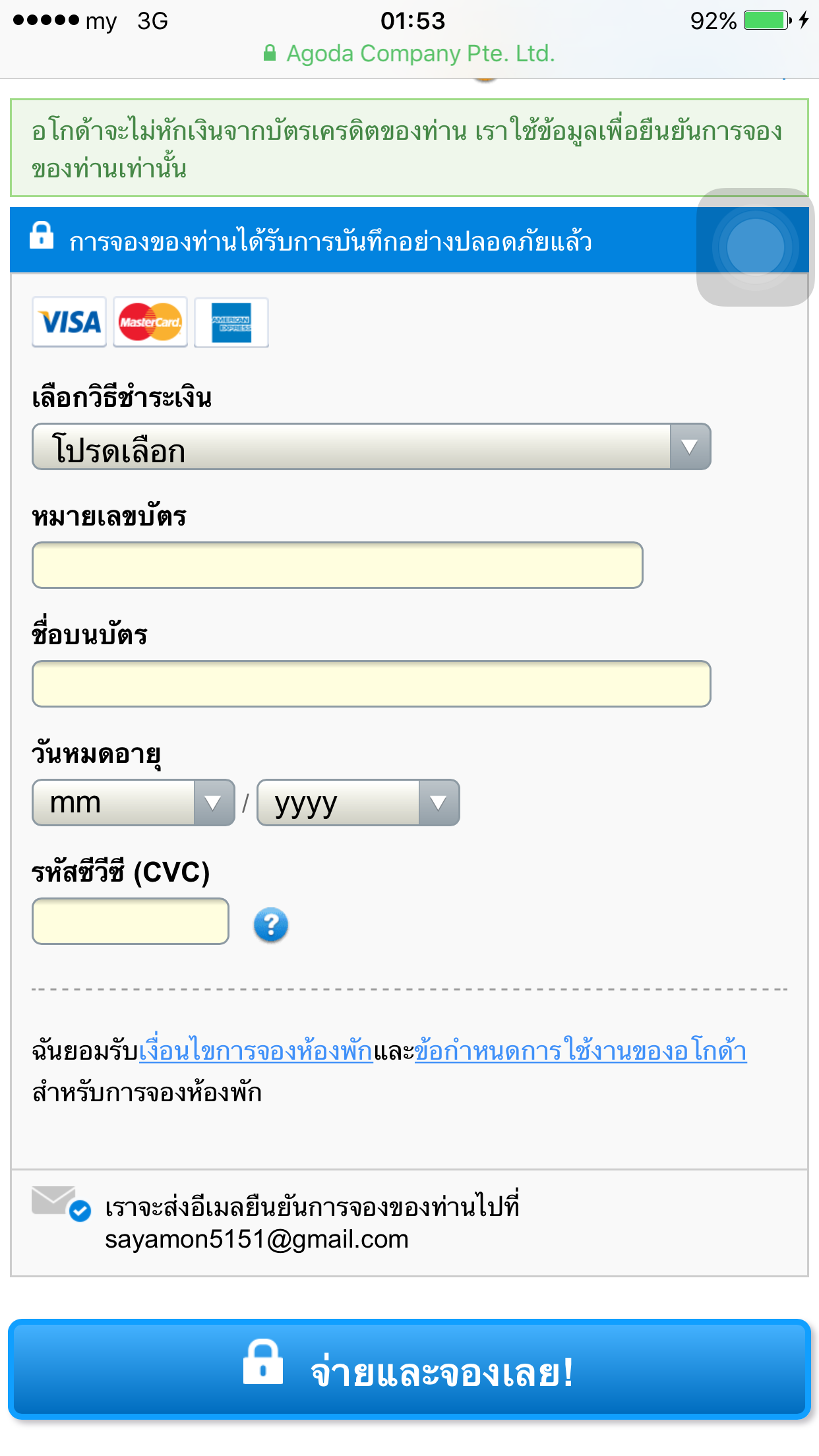 จองอโกด้า ไม่ผ่านบัตรเครดิตได้ไหม