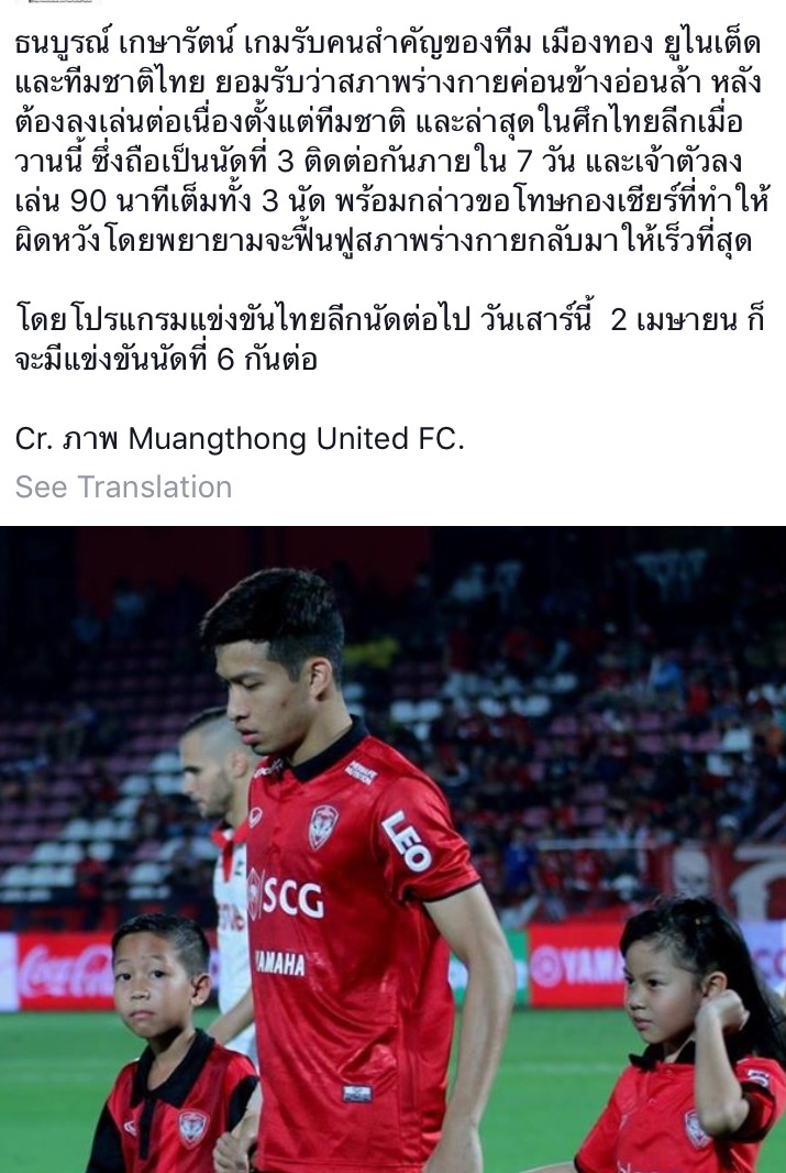 ขอกำลังใจให้ "ตั้ม ธนบูรณ์ เล่น 90 นาทีเต็ม 3 นัดใน 7 วัน รอเล่นนัดที่ 4 วันเสาร์นี้" ยอมรับร่างกายอ่อนล้า !!!