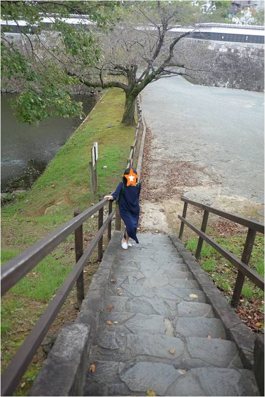 เราเดินทางไปเที่ยวฟุกุโอกะ กับเพื่อนๆ เมื่อเดือนที่ผ่านมาค่ะ ไปกัน 4 คน นัดเจอกันที่สนามบินเลย  ทุกอย่างดูดี ประเทศสวยงามอากาศดี แต่มันดีแค่วันเดียวค่ะ เพราะวันที่ 2 เรากับเพื่อน นั่งรถไฟเที่ยวปราสาทคุมาโมโต้กัน ไปถึงสถานีคุมาโมโต้ ประมาณเที่ยงๆ เดินดูของน่ารักๆ กันแล้ว ก็นั่งรถรางไปปราสาทกันเลย ระหว่างทางขึ้นไปปราสาท มันก็จะมีแหล่งน้ำข้างทาง เป็นบันไดลงไปแบบนี้ค่ะ