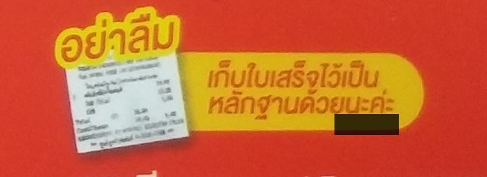 เห็นคำว่า "เก็บใบเสร็จไว้เป็นหลักฐานด้วยนะค่ะ" ที่จริงต้องเขียนว่า "นะคะ"