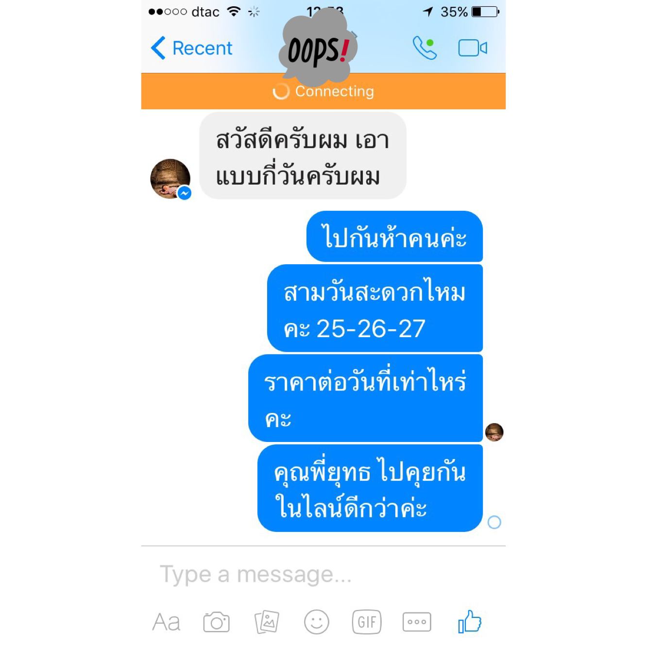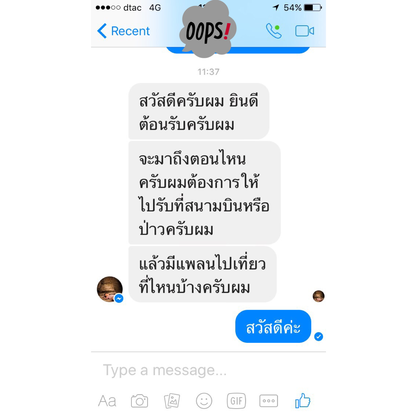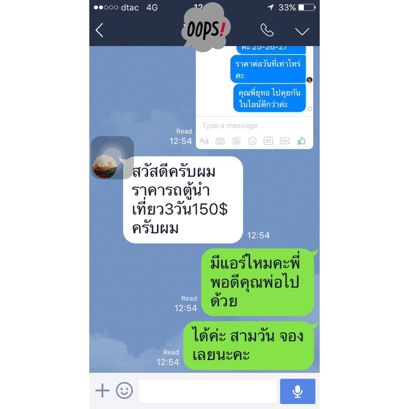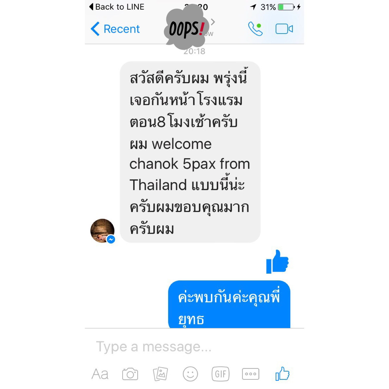 พวกเราเห็นว่าภาษาไทยของแกชัดเจนมาก พิมพ์ถูกต้องทุกคำ โดยที่เราเป็นคนไทยแท้ๆยังรู้สึกแย่เลยที่พิมพ์ไม่ถูก เราเลยวางใจกันเรื่องคนขับรถว่าไว้ใจได้และไปเตรียมเรื่องอื่นต่อ