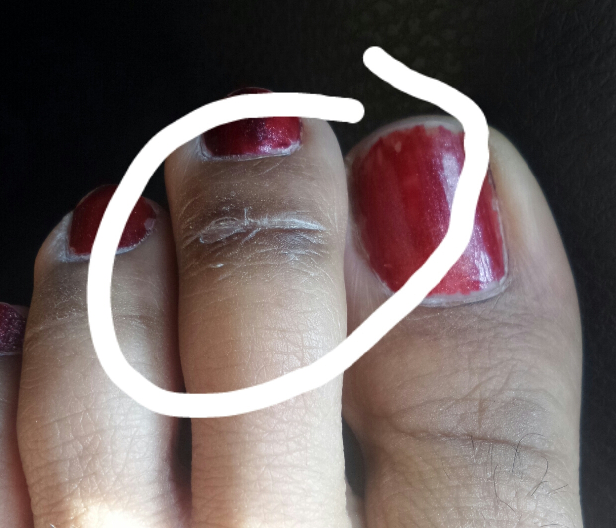 ผิวหนังที่นิ้วชี้เท้าซ้ายด้านแล้วแตกเป็นแผล เกิดจากอะไร แล้วแก้ยังไงคะ (มีรูป)