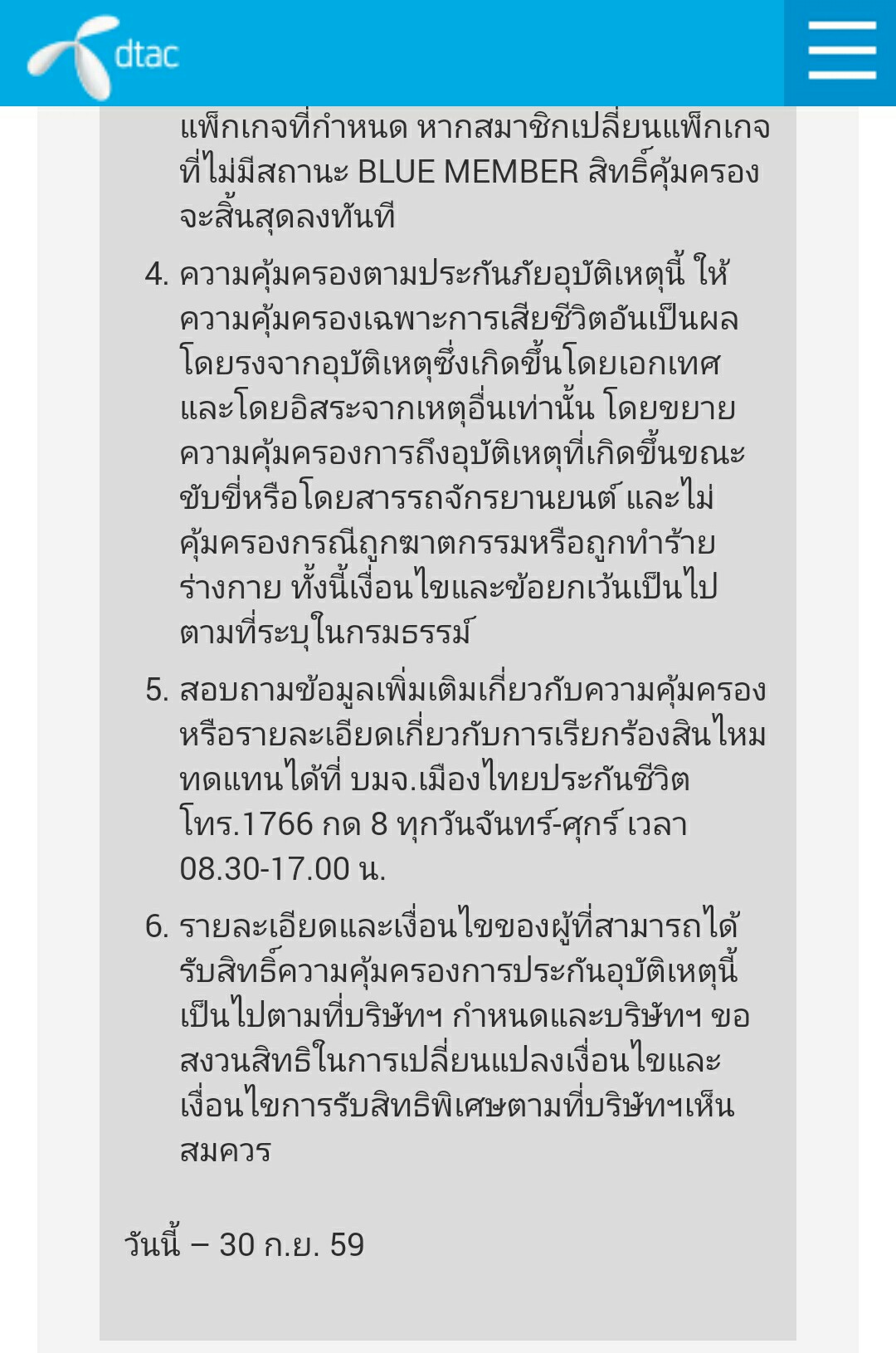 รบกวน Dtac ช่วยชีแจ้งด้วยครับ ถูกยกเลิก สิทธิคุ้มครองประกันภัยมือถือ