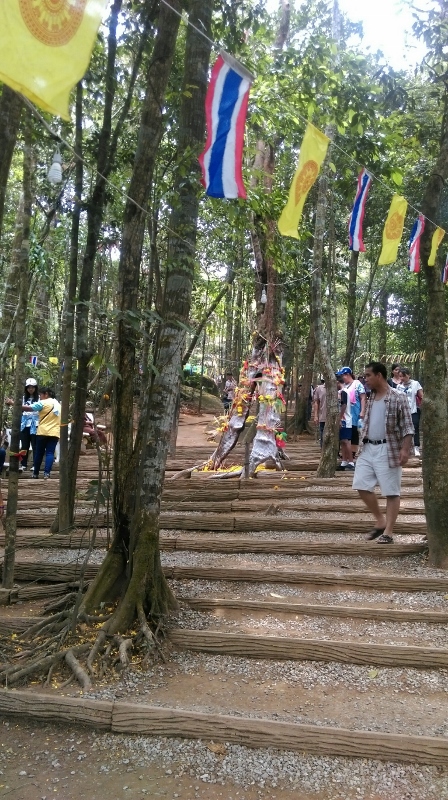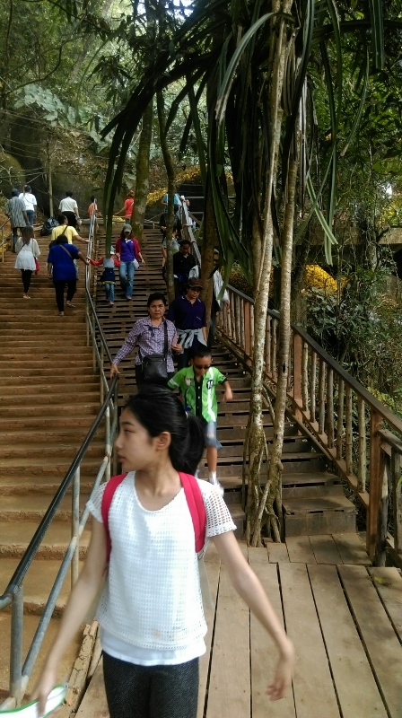 หลังจากลงจากรถก็เริ่มต้นการเดิน ครับ เป็นระยะทาง 1 กม ครับ วันนี้เดินทางกับ คุณพ่อ และคุณแม่ กับ ลูกชาย ลูกสาว เดินทางขึ้นไปพร้อมกัน แต่คุณพ่อ อายุ 70 กว่า ขึ้นไปได้ 300เมตร ถอดใจ เพราะท่านเป็นโรคประจำตัว เกี่ยวกับหัวใจ ก็เลยไม่เสี่ยงครับ ท่านก็เลยเดินกลับลงไปที่โรงอาหารด้านล่างเราก็เลยเดินขึ้นกัน 4 คน