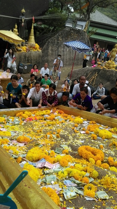 จากนั้นก็แวะทางเสบียงที่ขนมา ครับ ข้าวเหนียวหมูทอด จัดไป ครับ ใช้เวลาขึ้นมาถึง 11.30 ครับ ก็แวะไหว้พระพุทธไปตามทาง จากจุดนี้ต้องขึ้นไป อีกถ้าจะไป ไหว้ผ้าแตง ซึ่งจะใช้เวลาอีก ราวชั่วโมง แต่เนื่องจากมากับท่านแม่ ท่านลูก ทุกคนส่ายหน้าบอกไม่ไหว กับท่านพ่อรอด้านล่างด้วย ก็เลยไม่ได้เดินต่อไปยังผ้าแดงครับ