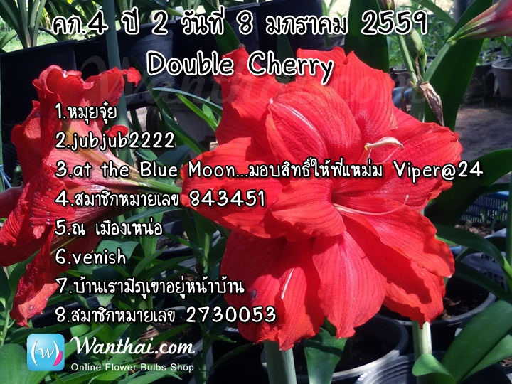 สรุปผลรายนามเพื่อนที่รับรางวัลคก. 4 ปี 2หัวน้องว่านสี่ทิศ Double Or Pink Cherry ได้แก่...
