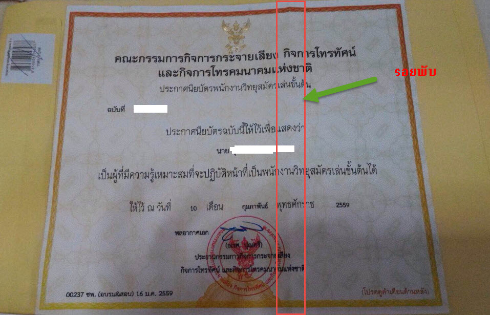 ของภายในเป็น "ใบประกาศนียบัตร" กับรอยพับ