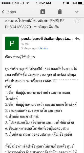 ให้เขียนคำร้อง ส่งเองสารมา และ จะแจ้งให้ทราบยาว อยู่ประมาณ 8 ข้อ มีข้อย่อยเยอะแยะ สรุป ว่าผมว่าคงยากที่จะสอบสวนได้ ถึงสิ้นสุด เพราะอยู่ที่ 4- 6 เดือนสอบสวนเรื่อง และการรับส่งระหว่างนี้คงเหมือนเดิม ถ้าเกิดความเสียหาย กับท่านอื่นๆ อีก