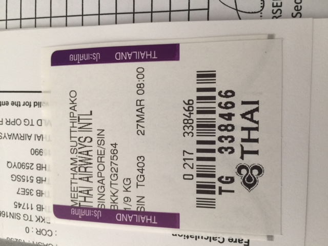 อ้างถึง TG403 Route BKK-SIN 27-MAR-2016