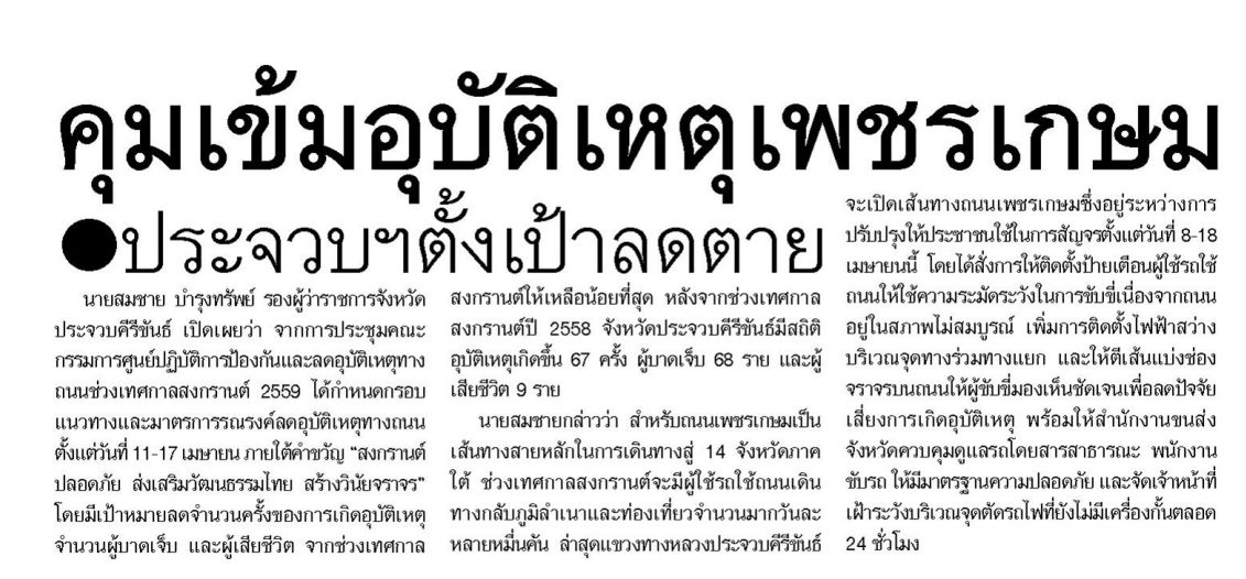คุมเข้มอุบัติเหตุ ถนนเพชรเกษม จ.ประจวบฯ
