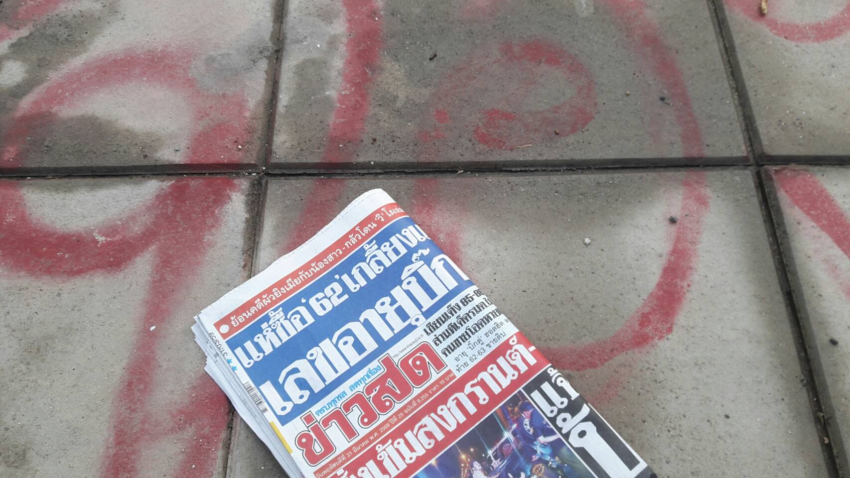 รูปที่เห็นคือถนนเลียบคลองทวีวัฒนา ถ่ายปีนี้ครับ ดูจากหนังสือพิมได้เลย พี่เห็นไหมครับ สีที่พี่พ่นจองที่ มันติดตั้งแต่ปีที่แล้ววววววว ติดนานเป็นสีทนได้เลย ผมไม่ได้ว่าหรือเป็นเดือดเป็นร้อนอะไรหลอก แค่เห็นมันไม่เหมาะสม พี่มาขายของ 3 วัน แต่สีที่พี่พ่น มัมติดไป3ปี(ประชด) แต่ก็ไม่แน่นะ พี่คิดดู ท่าพี่พ่นทุกปี 3ปี พี่จะแยกออกไหมว่า จอง ใครจอง ปีไหน หรือว่าจะให้ถนนเส้นนี้มีแต่คำว่าจองครัช