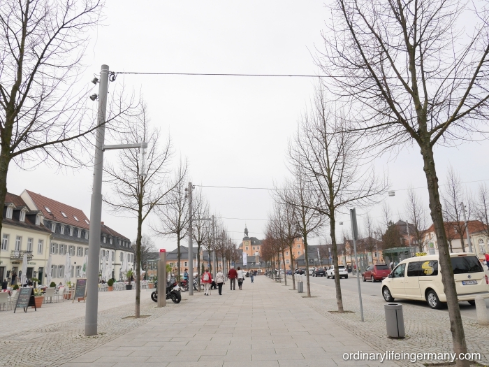ออกจากสถานีรถไฟ เดินตามป้าย Schloss จะเห็นปราสาทส้มอ่อนอยู่ไกลๆ นั่นแหล่ะ จุดหมายของเรา! ใกล้ๆปราสาทมีร้านอาหารตั้งอยู่หลายร้าน บรรยากาศน่านั่งมาก โดยเฉพาะช่วงนี้เป็นช่วงที่มี Spargel งอกงาม ซึ่งเมืองนี้เป็นเมืองแห่งหน่อไม้ฝรั่งนี่เลยทีเดียว (เค้าเคลมว่าเจ้า Spargel นี่ปลูกในสวนของวังตั้งแต่สมัยกลางศตวรรษที่ 17 แต่ก่อนเป็นอาหารของชนชั้นสูงเชียวนะคะ) ตอนนี้ทุกร้านเลยจะมีเมนูพิเศษของ Spargel ไปอีกประมาณสองเดือนค่ะ จากสถานีรถไฟใช้เวลาเดินประมาณ 5 นาทีนะคะ