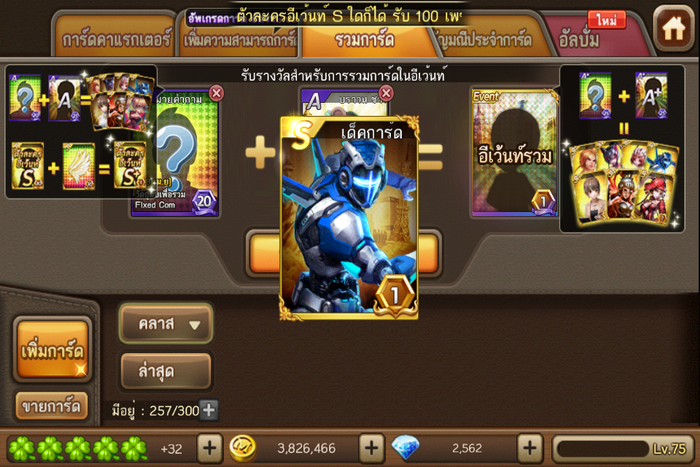 เริ่มจากได้การ์ดคำถามA มา1ใบจากการทำทัวร์วิค จัดการอัพรวมทันทีได้เด็คการ์คS
