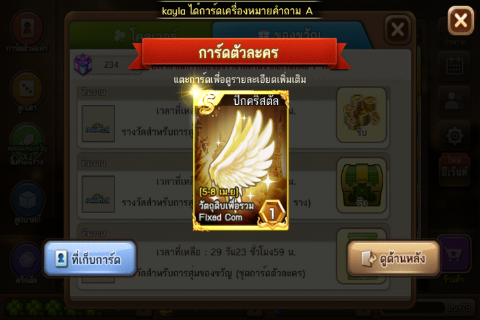 จากนั้นก็ไปสุ่มต่ออีกสักหน่อยเพื่อหาการ์ดคำถามอีก4ใบ ปรากฏว่า สุ่มได้ปีกคริสตัล โอ้วว้าว ได้ปีกมารวมกับเด็คการ์ดSแล้วเรา