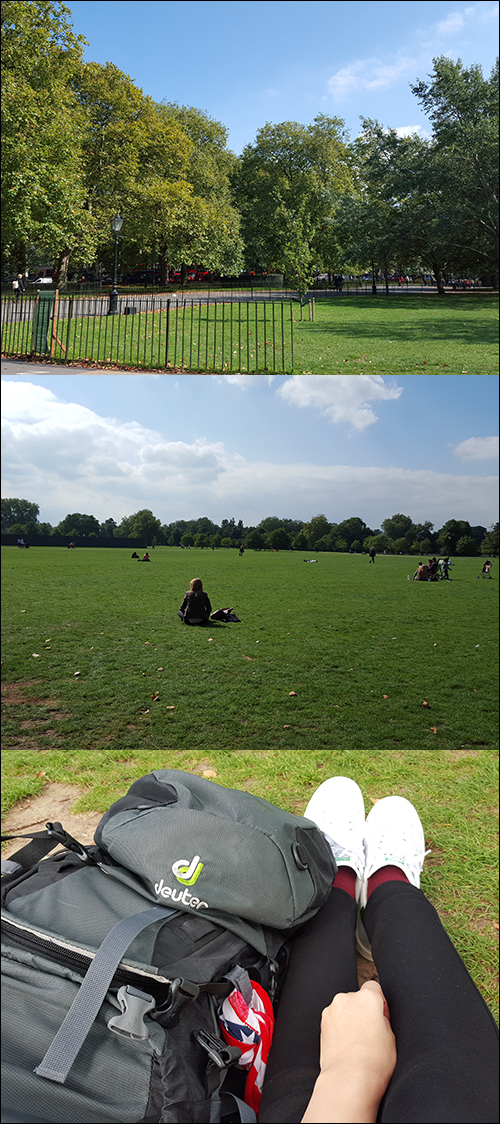 ก็เดินมานั่งพักตักหลักที่ Hyde park หาข้อมูลว่าคืนนี้จะนอนไหน ไปไหน