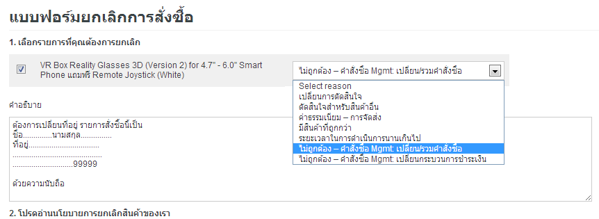 นี่คือระบบที่มี ผมก็แจ้งไปแล้วว่าเปลี่ยนที่อยู่ แต่ก็กลับเป็นว่ายกเลิกสินค้า