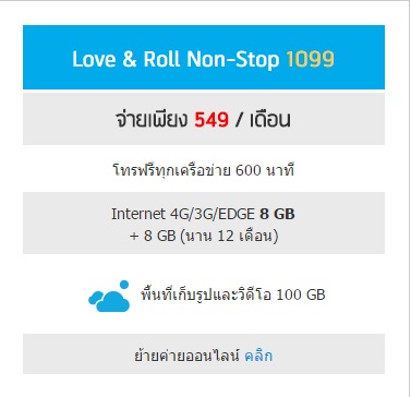 ตอนนี้ใช้โปรโมชั่นรายเดือนของ Truemove H โปรเก่าค่ะ Jumbo 599 โทร 300 นาที เน็ต 4.5 GB (รู้สึกไม่ค่อยคุ้มค่าค่ะ ใช้อินเตอร์เน็ต 4G หมดแล้วความเร็วลดลงตลอด ใช้เดือนละประมาณ 6-7 GB) ทางค่ายเดิมก็ไม่มีโป