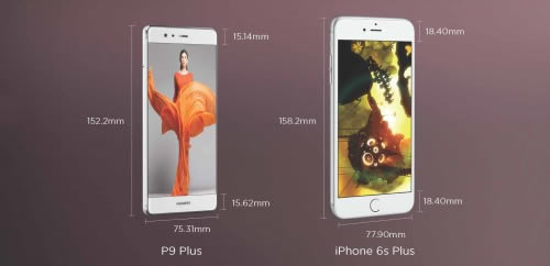 Huawei P9 Plus มากับจอแสดงผล AMOLED ขนาด 5.5 นิ้ว พร้อมด้วยเทคโนโลยีรับรู้แรงกดคล้าย 3D Touch ของไอโฟน แต่หัวเว่ยขอเรียกมันว่า Press Touch หน่วยความจำไม่ต้องเลือก จัดไป RAM 4 GB + ROM 64 GB แบตเตอรี่ความจุใหญ่ขึ้น 3400 mAh และสนับสนุนเทคโนโลยีชาร์จเร็ว ชาร์จ 10 นาที ใช้สนทนาได้นาน 6 ชั่วโมง นอกจากนี้ยังมีกล้องด้านหน้า 8 ล้านพิกเซล รองรับพอร์ต USB Type-C และติดตั้งลำโพงสเตอริโอมาให้ด้วย