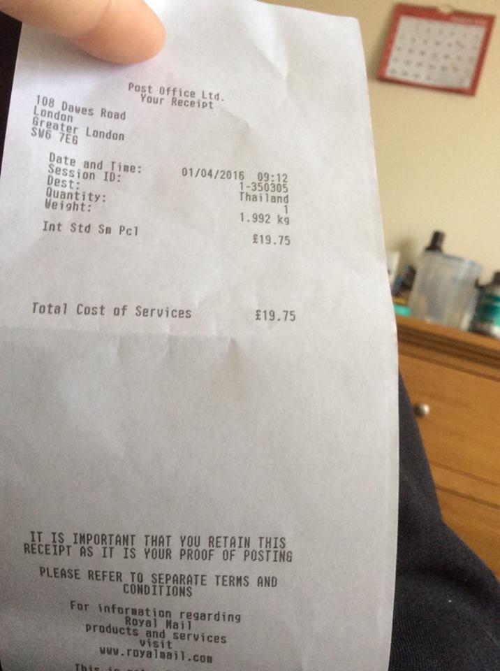 เพื่อนจากลอนดอนส่งของมาให้ โดยที่น่าจะส่งแบบธรรมดา