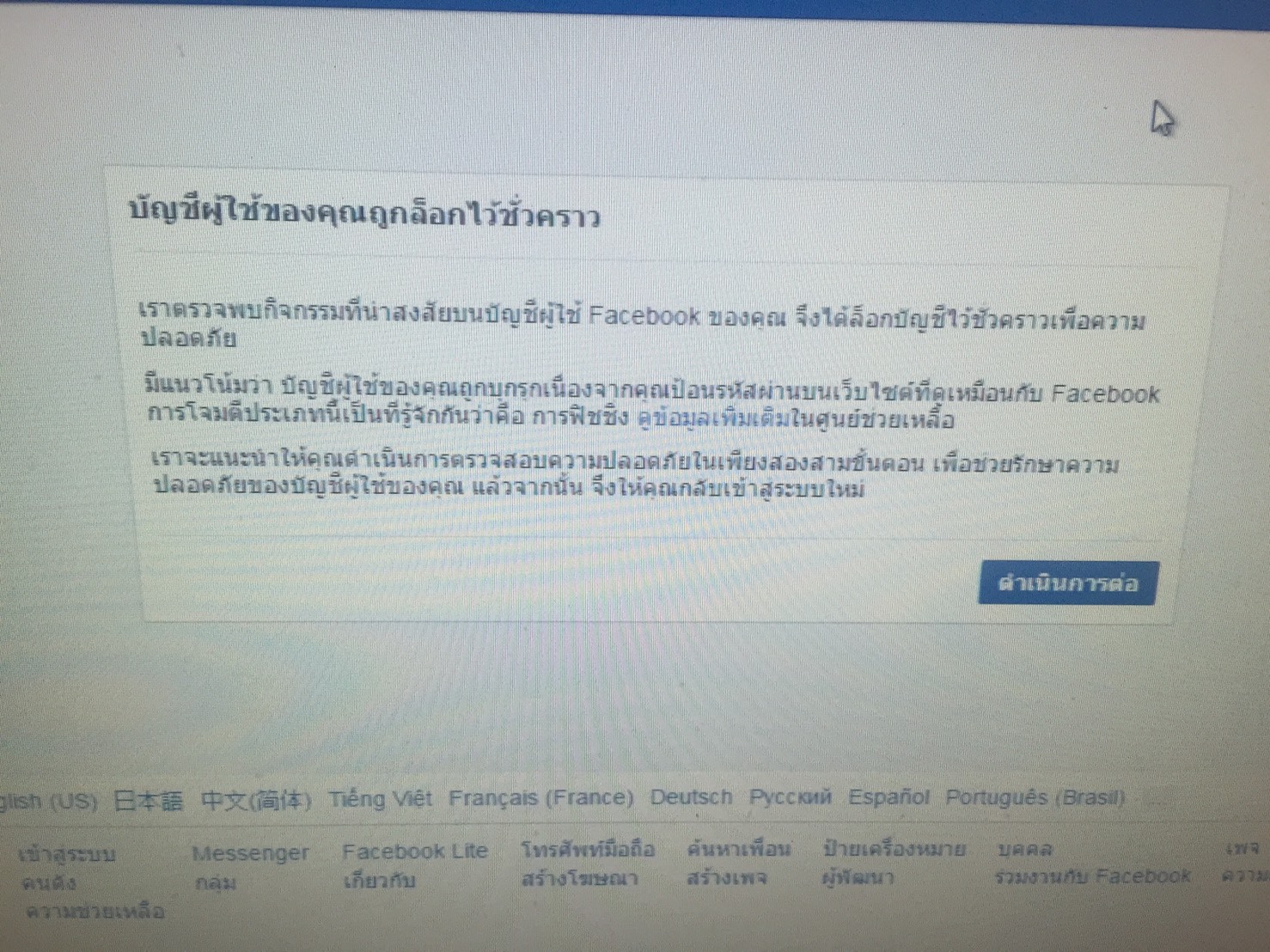 เป็นอย่างที่เห็นอยู่ในรูป มีใครเจอเหตุการณ์แบบนี้บ้างค่ะ ช่วยเราที เรายังมีสิทธิ์ที่จะได้เล่น Facebook อันเดิมไหม