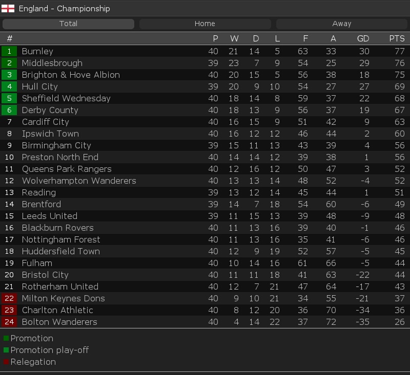 ตอนนี้เกมเหลืออีก6นัด หวังว่าดาร์บี้จะรักษาพื้นที่เพลย์ออฟไว้ให้ได้ แต่ฟอร์ม3วันดี4วันไข้ในช่วงนี้ กลัวรักษาไว้ไม่ได้เหมือนกันดีที่Cardiifก็ร้อนแรงไม่ต่อเนื่อง ตอนนี้ห่าง4คะแนน ขอรักษาพื้นที่ไว้ให้ได้แล้วไปลุ้นเพลย์ออฟอีกทีแล้วกันครับ