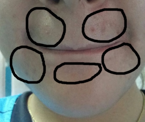 ชอบขึ้นรอบปากประจำเลย (ตรงที่วงไว้ คือตรงที่ขึ้นประจำ กล้องไม่ชัดค่ะ)