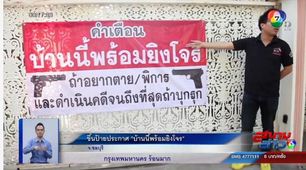 ชาวบ้าน จ.ชลบุรี ขึ้นป้ายประกาศ บ้านนี้พร้อมยิงโจร !