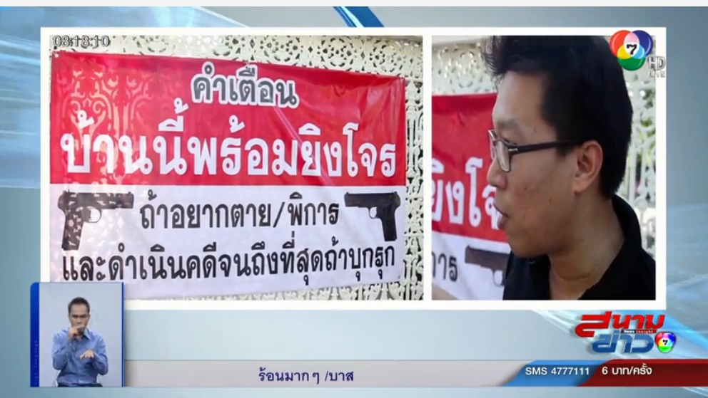 ถ้าเขียนป้ายเตือนโจรว่ามีปืนผิดไหม
