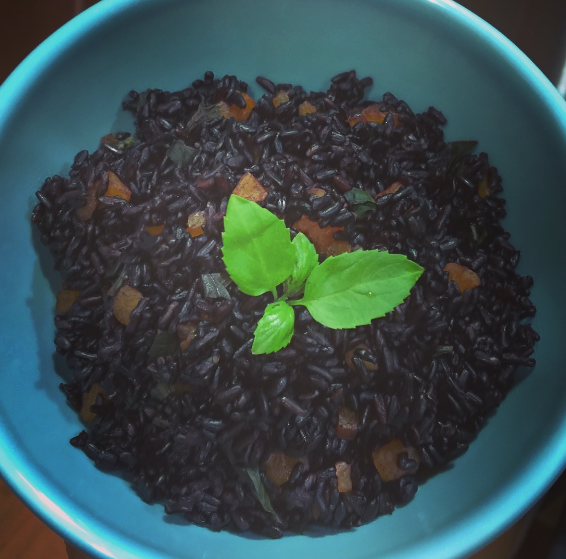 ส่วนผสมก็ไม่มีอะไรมาก แค่มี ข้าว แอปริคอทแห้ง และใบโหระพา
