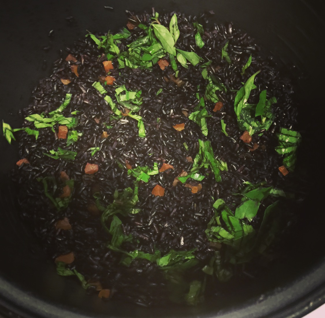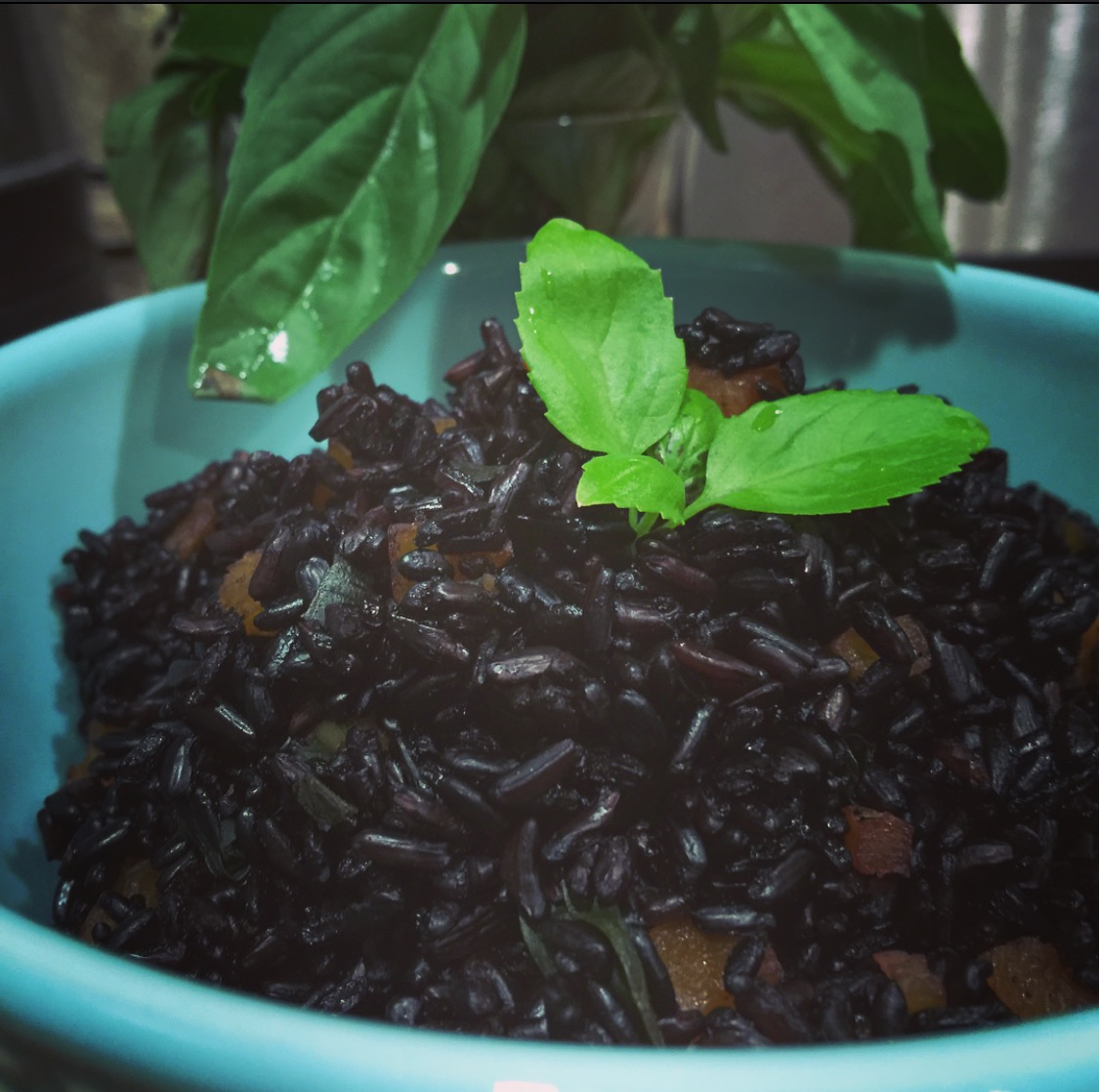 (แล้วแต่ว่าคุณชอบข้าวอะไร แต่ที่ทำให้ดู เป็นข้าว riceberry หุงผสมกับข้าว black rice (forbidden rice) สีเลยทะมึนมาก