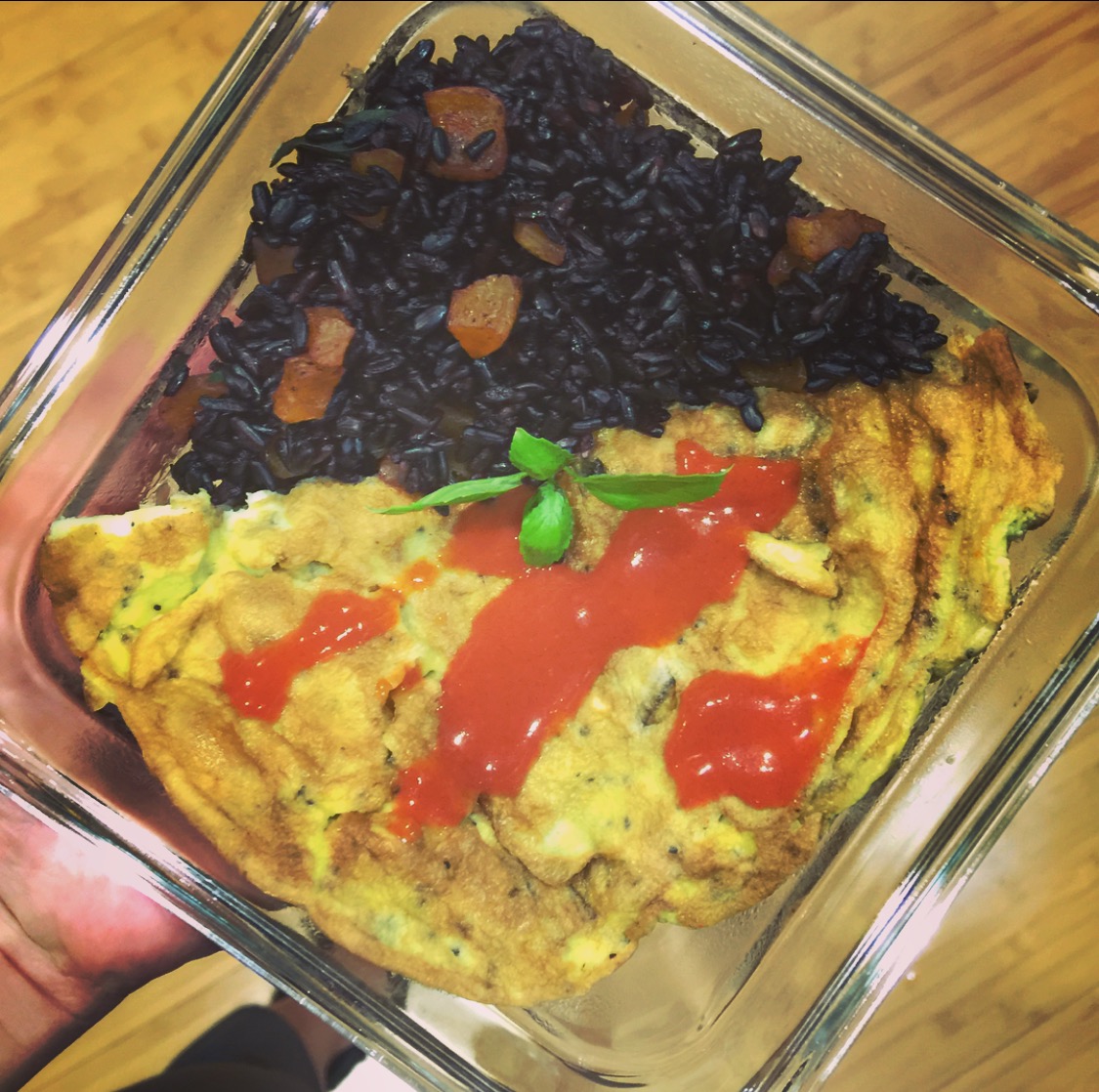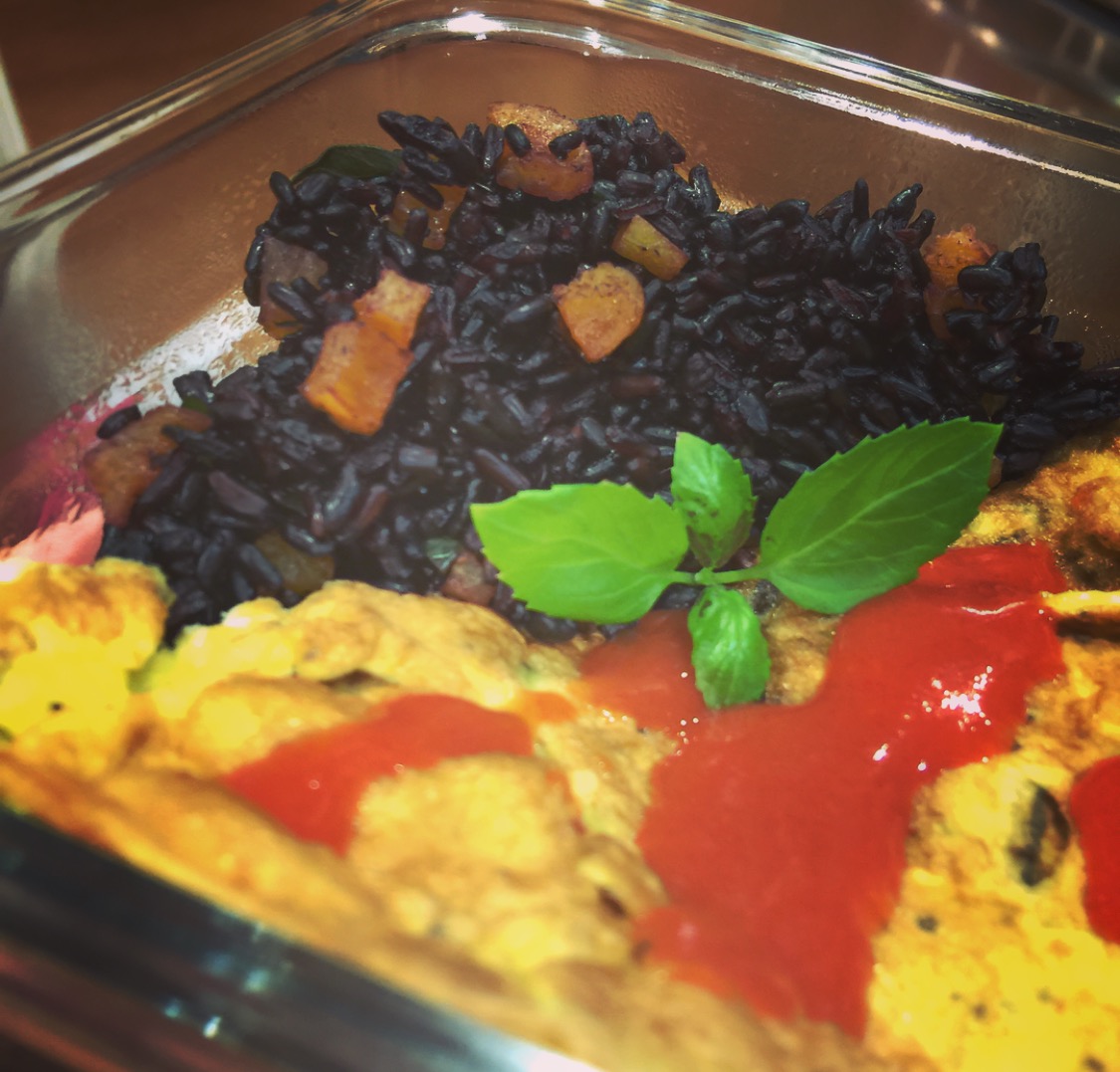 ข้าวหอมแอปริคอทโหระพา กับไข่เจียว (ให้คุณสามีทาน เธอบอก อร่อยดี แต่ไม่รู้ว่าคืออะไรที่ใส่เพิ่มเข้าไป)