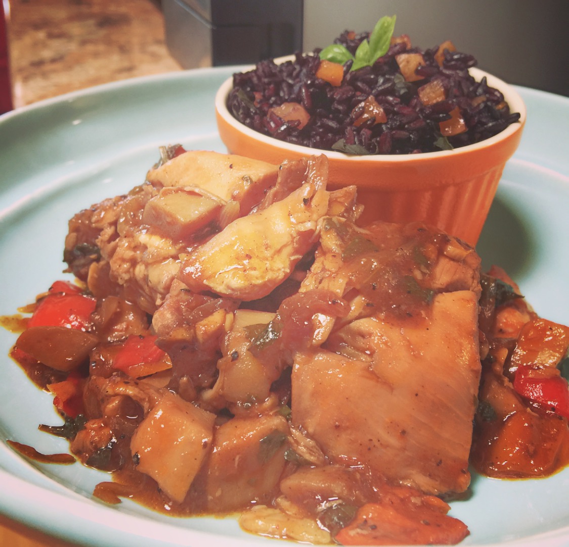 ข้าวหอมแอปริคอทโหระพากับ สตูไก่ทำเอง