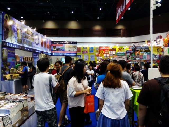 งานนี้มีหนังสือหลากหลายแนว จากนิยายรักไปถึงหนังสือศาสนา เราสามารถค้นหาและอ่านพลางๆก่อนที่จะซื้อได้ บางที คนขายเค้าดูเฟรนด์ลี่เกินไปนะ เพราะเพียงแค่อยู่ใกล้ๆบูธ เค้าพูดกับเราว่า "สอบถามได้ค่ะ" ทันที