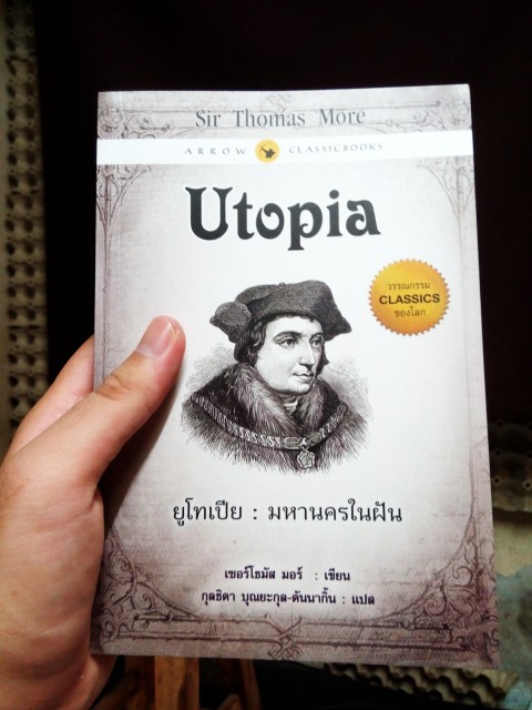 (อัพเดท : อ่านครึ่งเล่มแล้ว เนื้อหาช่วงแรกเป็นการคุยกันของการปกครองที่มีปัญหา ช่วงสองอ่านไม่หมด เป็นการอธิบายเรื่องเมืองยูโทเปีย) แต่ปกหนังสือเล่มนี้ เห็นผู้แปลบอกว่าเป็นวรรณกรรมคลาสสิกที่เขียนเกี่ยวกับเมืองแห่งสวรรค์ เราต้องการแนวคิดเกี่ยวกับเมืองแห่งอุดมคติและเราได้ยินคำว่า "ยูโทเปีย" มาตั้งแต่ม.ปลาย แต่เราก็ยังไม่รู้ว่าจะค้นคว้ายังไง สุดท้ายแล้วมีบางคนเค้าปรารถนาให้เราได้เจอหนังสือเล่มนี้ครับ แล้วหนังสือเล่มนี้ก็แปลไทยเสร็จสรรพมาพร้อมกับราคาที่เฟรนด์ลี่สุดๆ