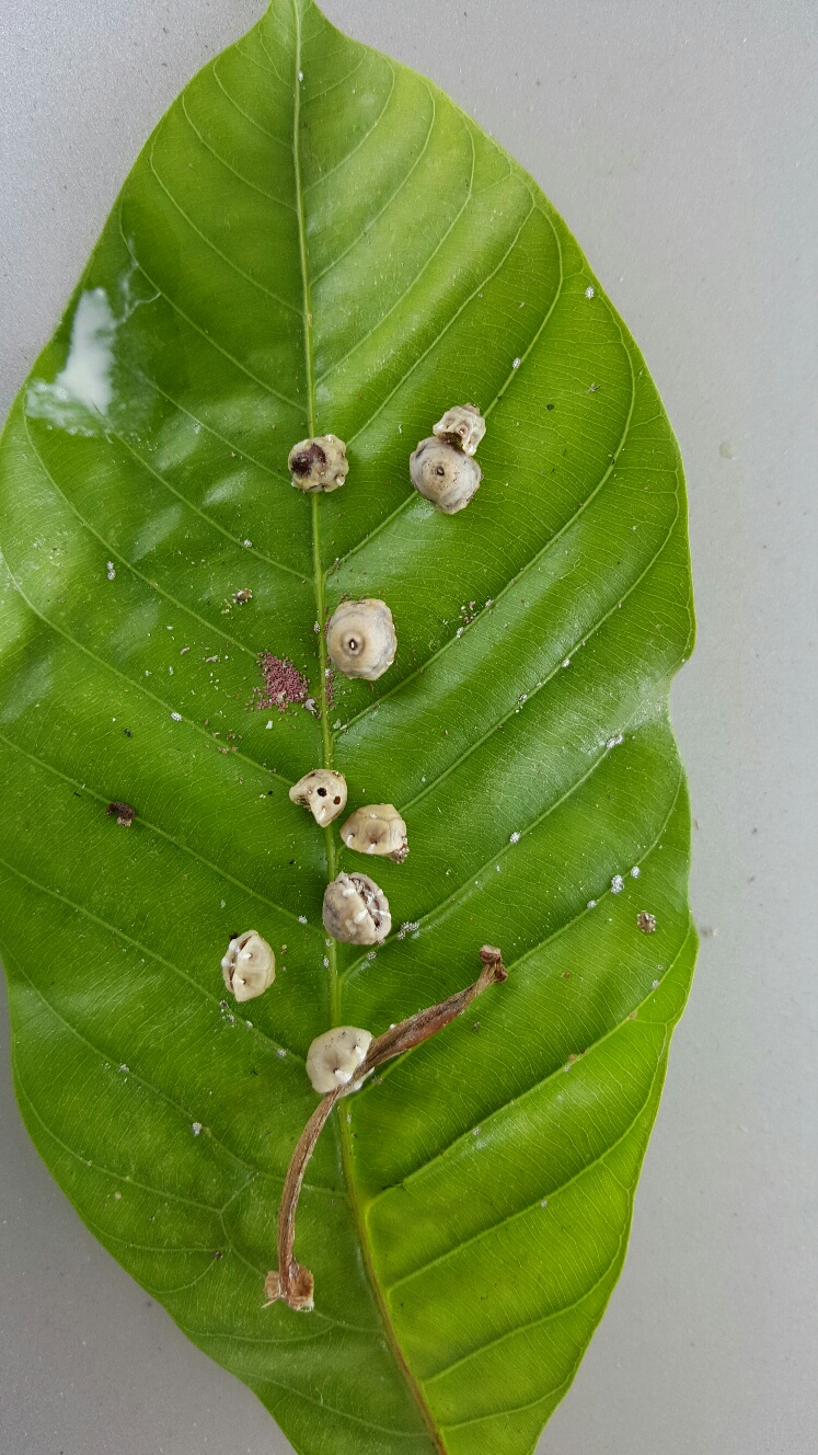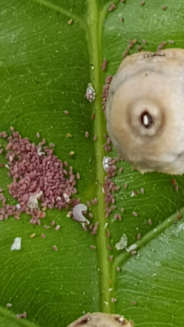 เยี่ยมๆ มองๆ ต้นบานบุรี เจอตัวอะไรแปลกๆ มีหลายตัว เลยแกะออกมา พอขยายรูปที่ถ่ายมา คิดว่ามีไข่ด้วย ไม่รู้ว่าจะกำจัดยังไงดีคะ