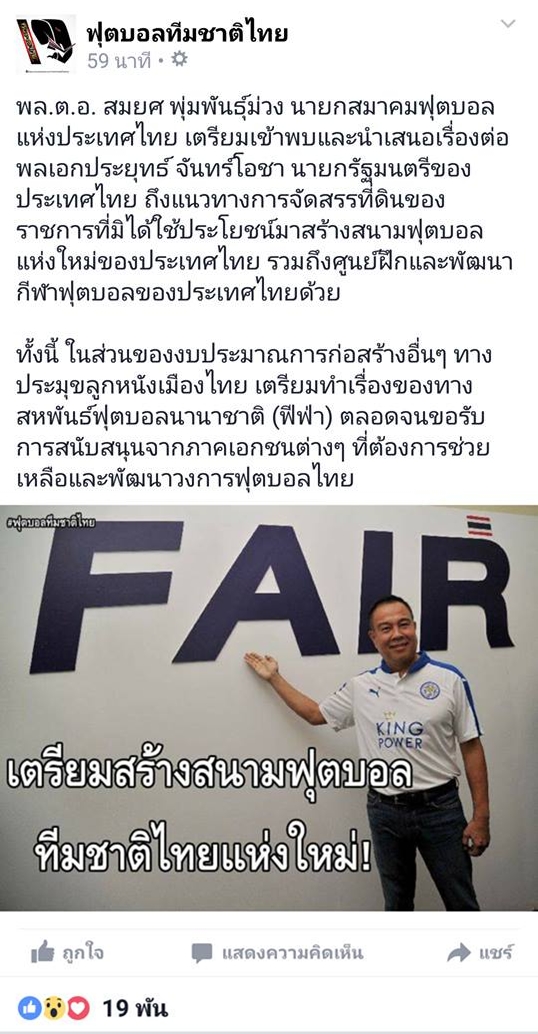 เตรียมสร้างสนามฟุตบอลทีมชาติไทยแห่งใหม่!