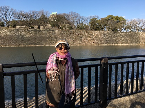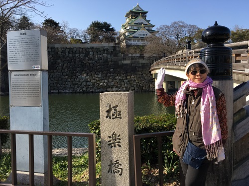 เดินออกไปสถานีเกียวโต นั่งรถท้องถิ่นไปโอซาก้า แล้วรถท้องถิ่นอีกขบวนไป Osakajokoen ก่อนลงจากรถ เห็นปราสาทที่ใหญ่ที่สุดในญี่ปุ่นอยู่ท่ามกลางดงไม้ ซึ่งเป็นสวนสาธารณะ ลงจากรถมุ่งหน้าไปทางปราสาท ออกจากสถานี ลอดอุโมงค์รถไฟ ด้านซ้ายเป็นสวนสาธารณะ ด้านขวาเป็นคันคลองที่มีต้นไม่ใหญ่เป็นแนวกำแพงกั้นคลอง เดินไปเรื่อยๆ โดยให้ปราสาทเป็นเป้าหมาย
