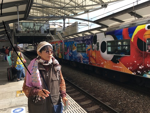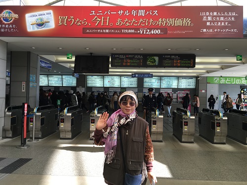 ออกจากสวนสาธารณะกลับสถานี เดินตรงออกไปทางซ้าย เห็นสะพานข้ามคลองไปสถานี JR อีกสายหนึ่ง ที่ไม่ได้อยู่ในเส้นทางวงแหวน เรากลับไปที่สถานี Osakajokeon นั่งรถท้องถิ่นสายเดิม ไปสถานี Universal City ซึ่งมี Universal Studio park จำลองแบบมาจาก Hollywoods ปลายทางคือ Sakurajima ช่วงนี้เป็นช่วงปิดภาคเรียนฤดูใบไม้ผลิ รถแต่ละขบวนที่รับผู้โดยสารจาก Akashi แน่นขนัด สวนสนุกมีรายการลดราคาจาก 19,800 เยน เหลือ 12,400 เยน