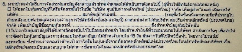 รบกวนสอบถามเกี่ยวกับการเขียนใบแสดงความจำนงการใช้สิทธิซื้อหุ้นสามัญ ตามรูปในข้อ 6