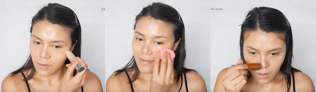 จากนั้นทา contour (นี้แก้ตามรูปหน้าเค้านะ)ที่ข้างหน้าผาก ใต้คาง ข้างสันจมูก