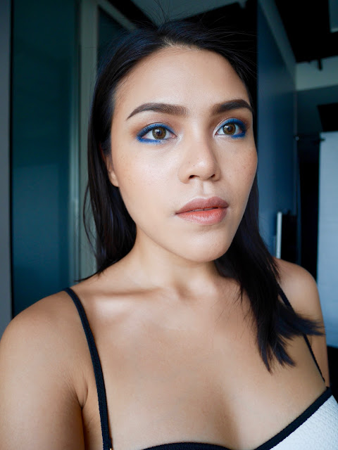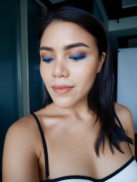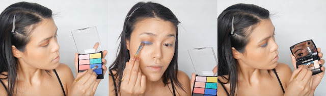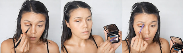 แล้วแตะสีน้ำเงินมาไล้ขอบตาทั้งบนและล่างแทน eyeshadow