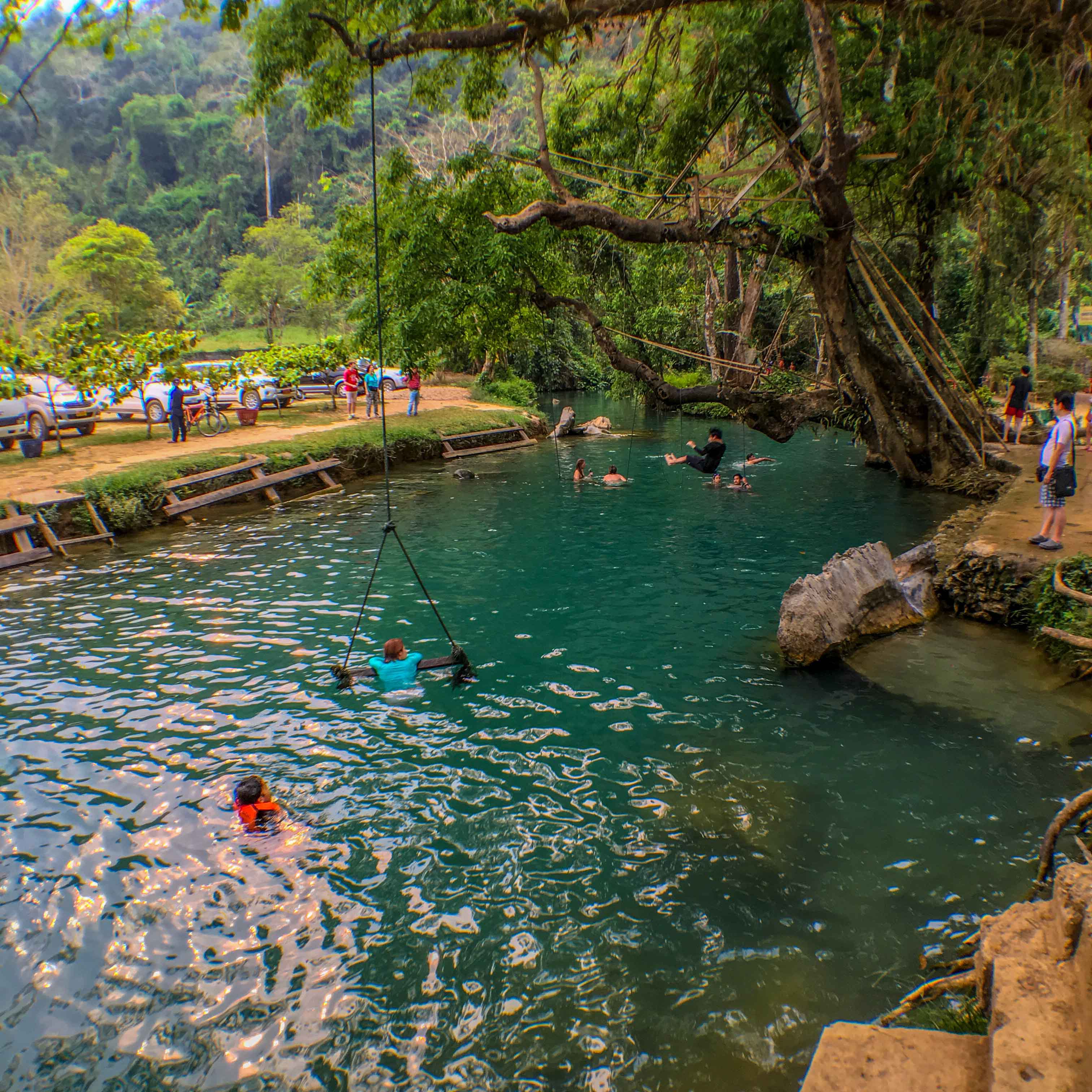 ถ้ามาวังเวียงใครๆ ก็คงต้องบอกว่าให้ไปที่บลูลากูนแน่ๆ และมันก็ควรไปจริงๆ นะ น้ำมันสวยมาก มีปลาว่ายในน้ำให้ดูด้วย นั่งชิวๆ กินเบียร์ถือว่าสบายเลยจริงๆ