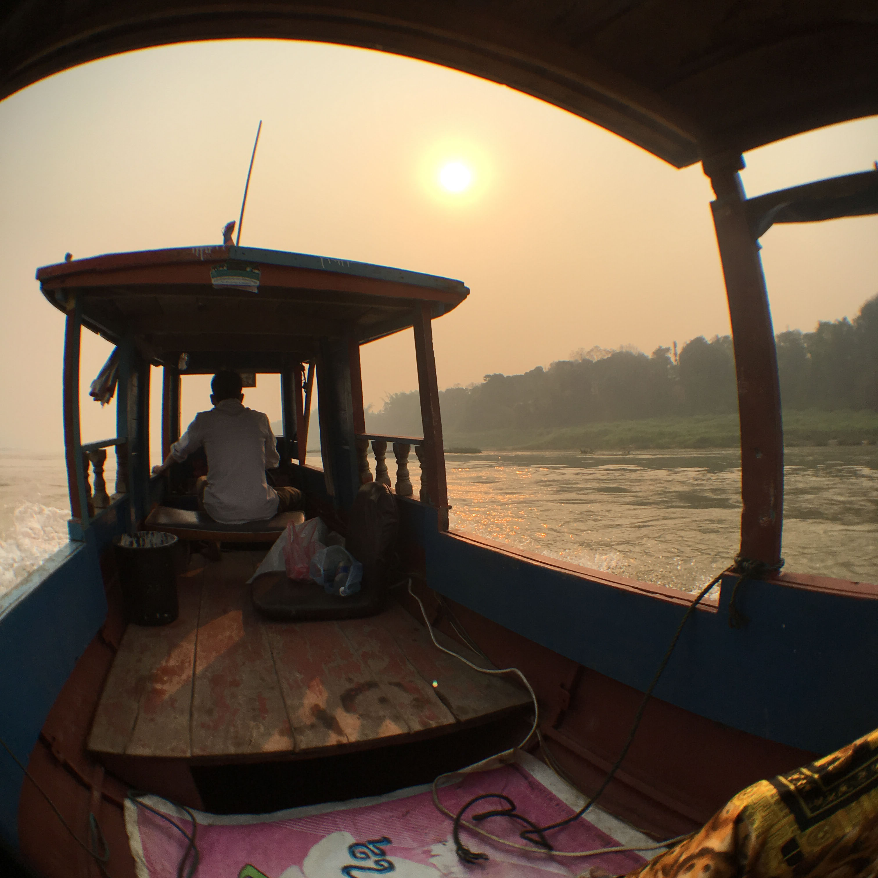 วันนี้เป็นอีกวันที่มีโอกาสได้ทำกิจกรรมทั้งวันในลาว เราเลือกที่จะซื้อทริปล่องเรือในแม่น้ำโขง เพื่อนไปที่ถ้ำติ่ง หมู่บ้านผลิตเหล้า และน้ำตกกวางสีค่ะ เรือออกตอนยาวๆ แปดโมงครึ่ง ทำให้ยังเห็นพระอาทิตย์ที่กำลังขึ้นอยู่ สวยมากๆ ค่าเข้าถ้ำคนละ 20,000 กีบ