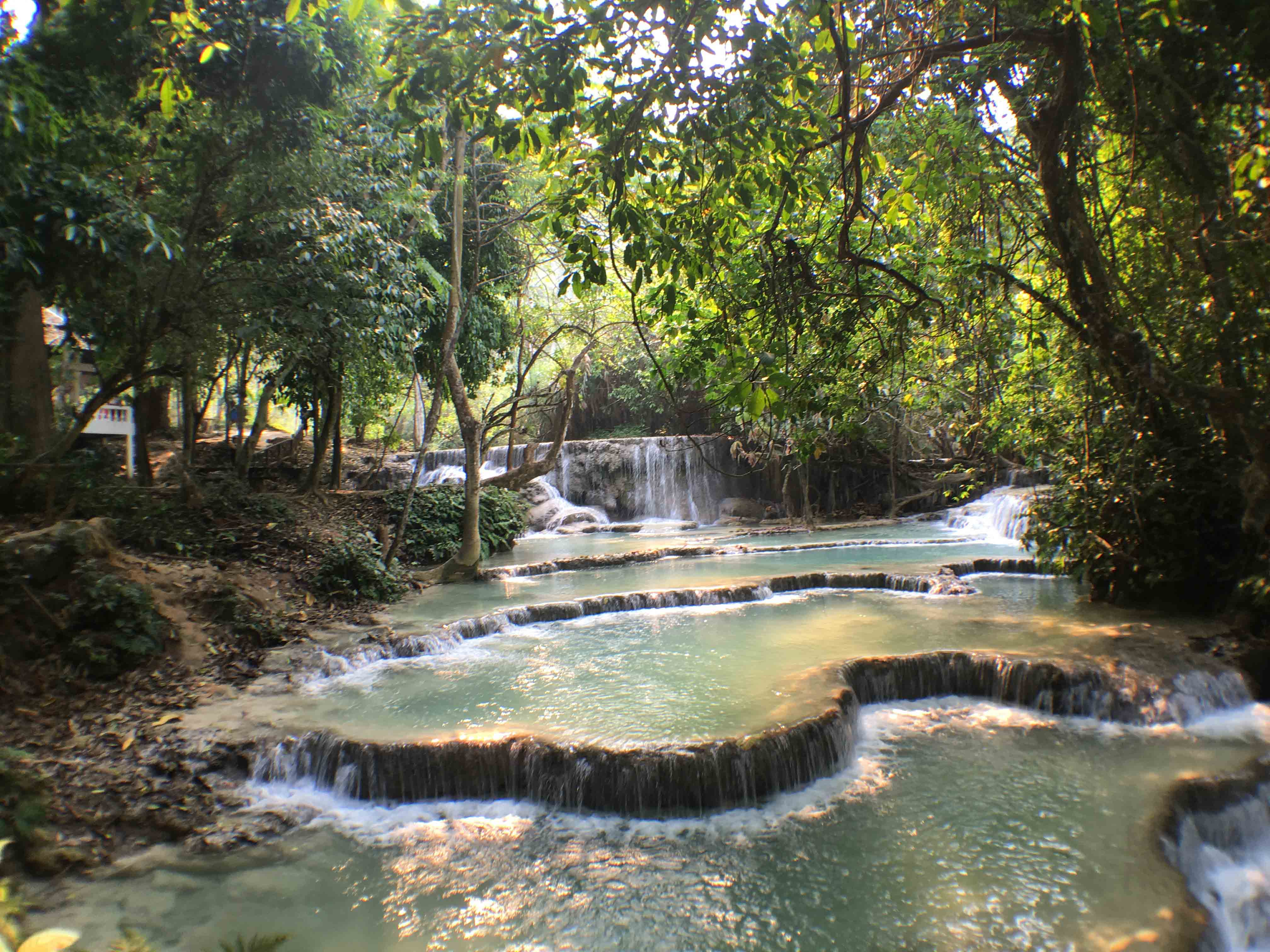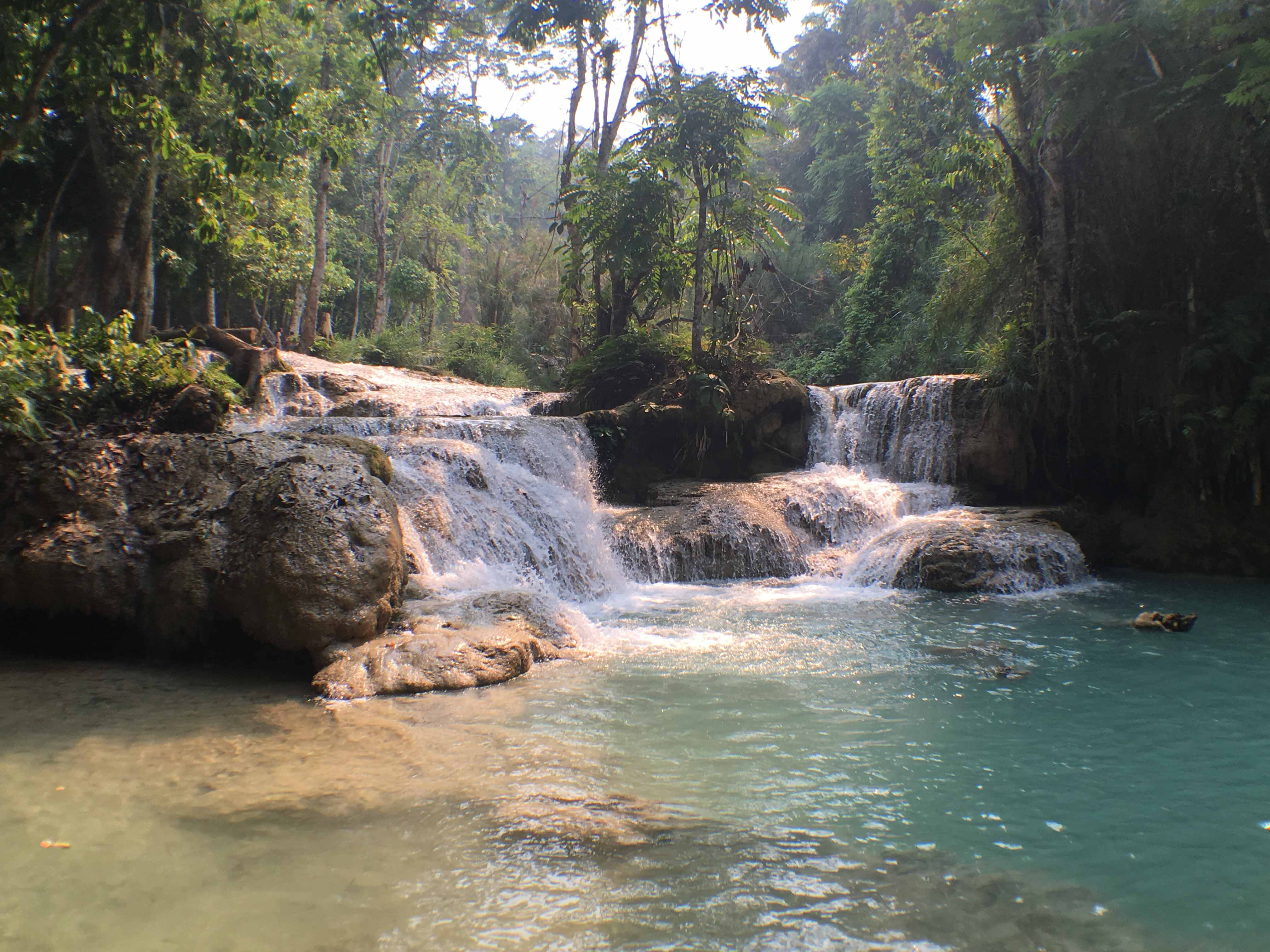 รถจากตัวเมืองมาน้ำตกกวางสีใช้เวลาประมาณ 40 นาทีค่ะ พอมาถึงก็จ่ายค่าเข้าน้ำตกคนละ 20,000 กีบ แล้วเดินไปดูหมีที่อยู่ระหว่างทางผ่าน หลังจากนั้นเราก็ไปดูน้ำตก ส่วนตัวชอบน้ำตกเวราวัณมาก เพราะคิดว่านั้นก็สวยมากแล้ว พอมาเจอน้ำตกที่ลาว บอกเลยว่าคนละเรื่องกันเลย ที่นี่น้ำตกสวยมากจริงๆ ค่ะ