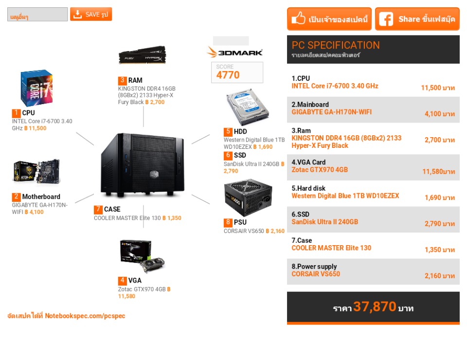 +++ ลองจัดเสปคคอม pcงบ 38000 ไม่รวมจอ คะแนนต่ำจัง รบกวนขอคำแนะนำครับ
